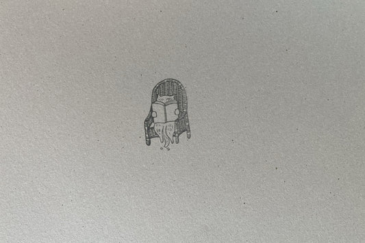 Handmade Large Wood Rubber Stamp with Bookworm Cat